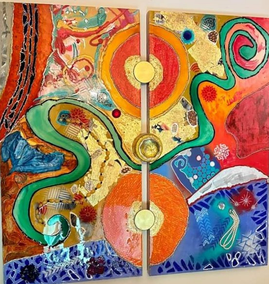 Collective work ─ 2024 ─ Mixed media with epoxy on wood panels ─ Diptych 48 x 48 ро ─ Available